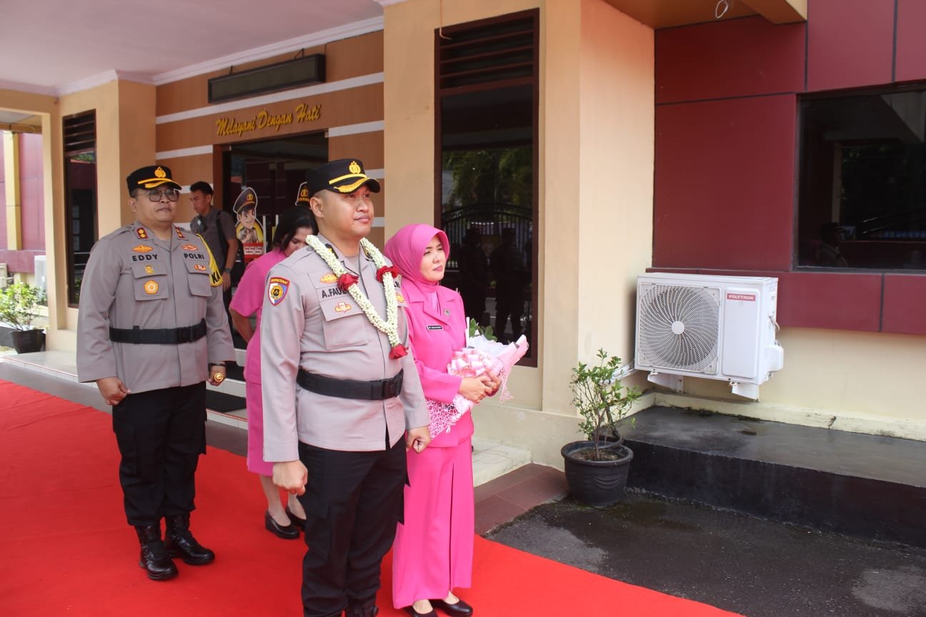 Suasana semakin penuh makna saat tokoh agama memberikan ulos kepada Kapolres yang baru dan Ibu Ketua Bhayangkari, menandakan penghormatan dan harapan untuk kesuksesan dalam menjalankan tugas. Setelah itu, Kapolres yang baru dan Ibu Ketua Bhayangkari menuju ruangan Lobi Sarya Arja Racana untuk transit dan beristirahat sejenak.