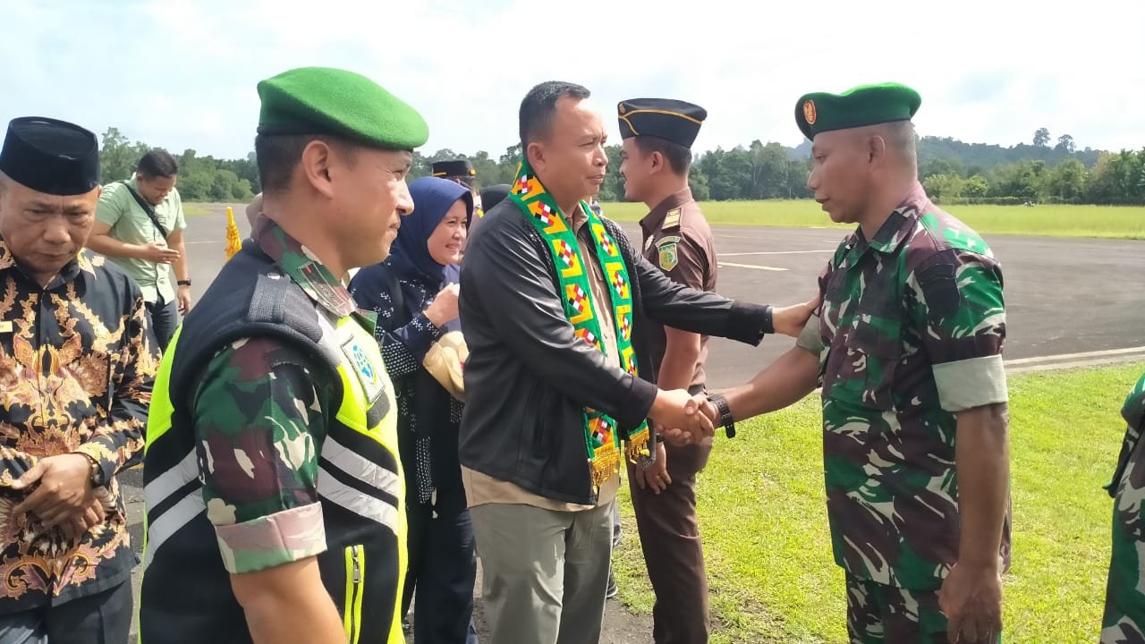 TNI AL, Simeulue,- Pangkalan TNI AL Simeulue Komandan Pangkalan TNI AL Letkol Laut (P) Oyu Mulia Sukmana, S.T., M.T., M.Tr. Opsla., didampingi Pasintel Lanal Simeulue Kapten Laut (P) Amir Husin Lubis menghadiri kegiatan Penyambutan Kedatangan Danrem 012/TU Kolonel Inf Deni Gunawan, S.E., dalam rangka kunjungan kerja di wilayah Kodim 0115/Simeulue, bertempat di Bandar Udara Desa Lasikin, Kecamatan Teupah Tengah, Sabtu (25/05/2024).