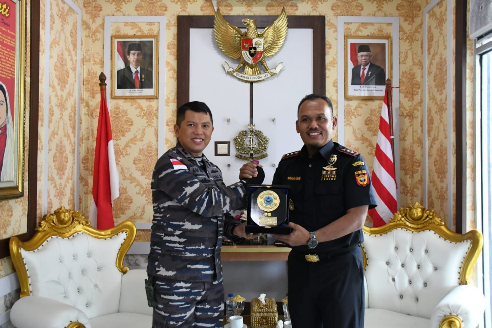TNI AL, Tanjung Balai,- Komandan Pangkalan TNI AL Tanjung Balai Asahan Letkol Laut (P) Aan Prana Tuah Sebayang, S.E., D.W.C., didampingi Pasintel dan Pjs. Pasop menerima kunjungan Kepala Bea Cukai Teluk Nibung Nurhasan Ashari, S.E., M.M., di Mako Lanal Tanjung Balai Asahan, Rabu (5/7/2023).