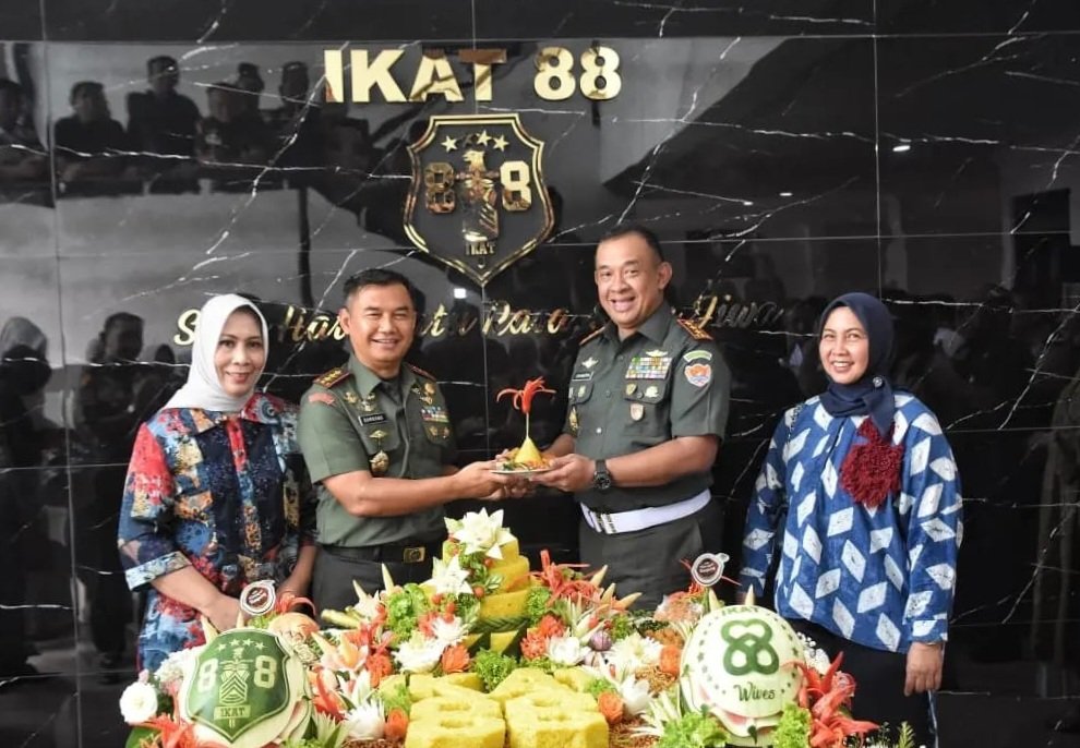 Pangdam Jaya/Jayakarta Mayjen TNI Untung Budiharto beserta Ketua Persit KCK PD Jaya Ny Gustina Untung Budiharto menghadiri peresmian Mess Ikatan Keluarga Alumni Tidar 1988 (IKAT 88) yang dipimpin oleh Danpuspomad Letjen TNI Chandra W. Sukotjo, M. Sc, tempat Komplek Billymoon, Jln Kelapa Sawit Raya, Pondok Kelapa, Duren Sawit, Jakarta Timur, Kamis (19/01/2023).