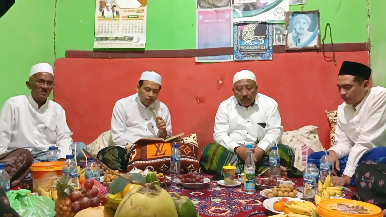 Acara Maulid Nabi Muhammad SAW dimulai dari pagi jam 6.00 Wib dengan khataman Al-Quran yang di lantunkan oleh ustad :