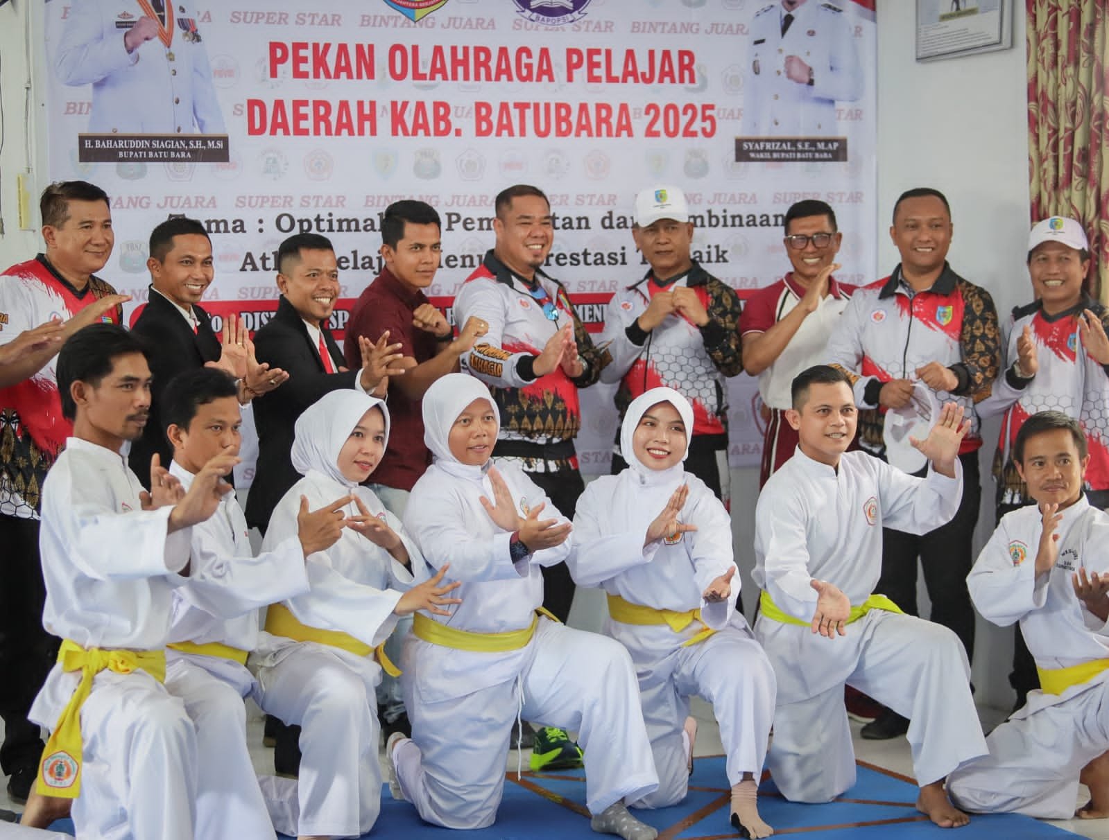 Selanjutnya Wabup Syafrizal bersama Kapolres Batubara dan Staf Ahli TP-PKK Ny. Leli Syafrizal memberikan penghargaan dan uang pembinaan kepada atlet berprestasi pada ajang POPPROVSU dan POSPEDASU Tahun 2025 dan penyerahan sertifikat pada ajang International Pencak Silat Indonesia Open Championship 2025 serta International Pencak Silat Indonesia Student Open 2025.