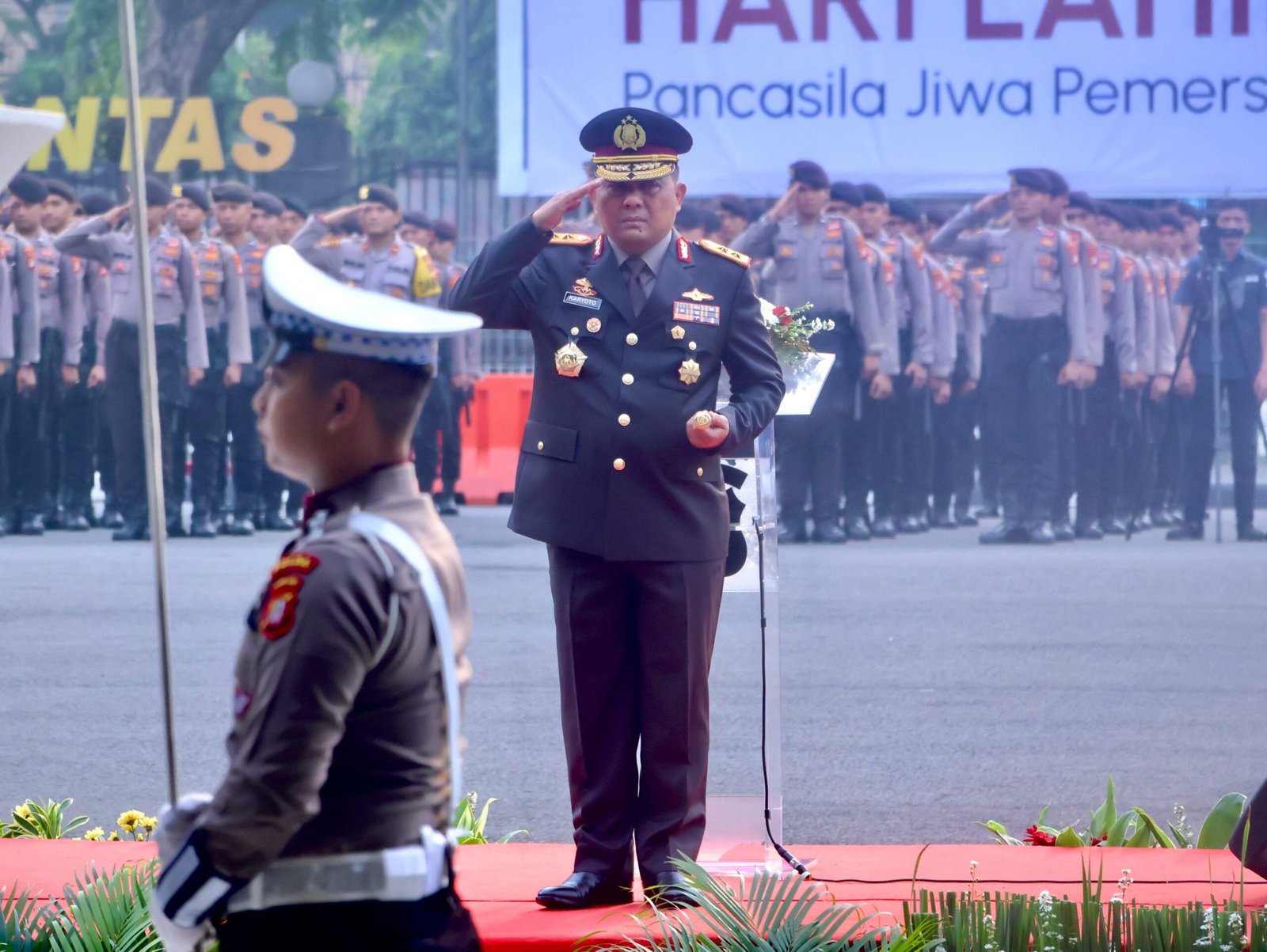 Jakarta – Polda Metro Jaya menggelar Upacara Hari Lahir Pancasila, kegitan dilaksanakan di Lapangan Presisi Ditlantas Polda Metro Jaya. Sabtu (1/6/2024).