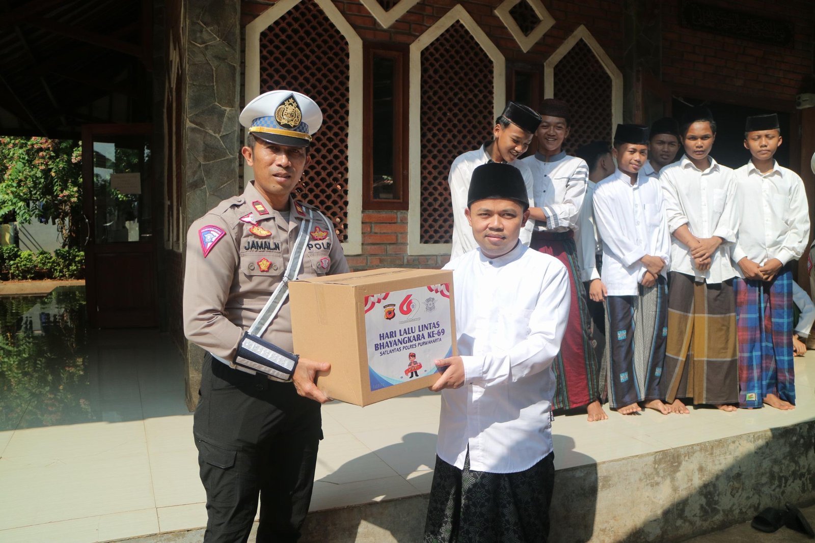 Satuan Lalulintas (Satlantas) Polres Purwakarta dengan menggelar Silaturahmi ke sejumlah pondok pesantren di kabupaten Purwakarta sembari memberikan bantuan kebutuhan bahan pokok.