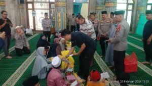 JAKARTA– Kapolsek Pesanggahan Kompol Tedjo Asmoro bersama dengan Pokja wartawan Jakarta Selatan menggelar aksi berbagi di masjid Al-Mu’awanah, Pesanggrahan, Jakarta Selatan dalam rangka memperingati Hari Pers Nasional. Jumat (23/02.24)