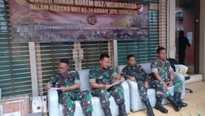 Kapenrem 052/Wijayakrama ,Mayor Inf Missin MD kepada awak media menjelaskan, “Hari ini Korem 052/Wijayakrama menyelenggarakan giat bakti sosial ‘Donor darah dalam rangka HUT ke-74 Kodam Jaya/Jayakarta’ yang bertujuan untuk membantu sesama serta membantu ketersediaan stok darah berbagai golongan darah”.