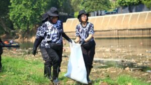Polisi Wanita Republik Indonesia (Polwan) menggelar acara bakti sosial pembagian sembako dan menyisir sampah di Bantaran Kali Ciliwung. Acara tersebut digelar untuk memperingati hari jadi ke-75 Polwan.