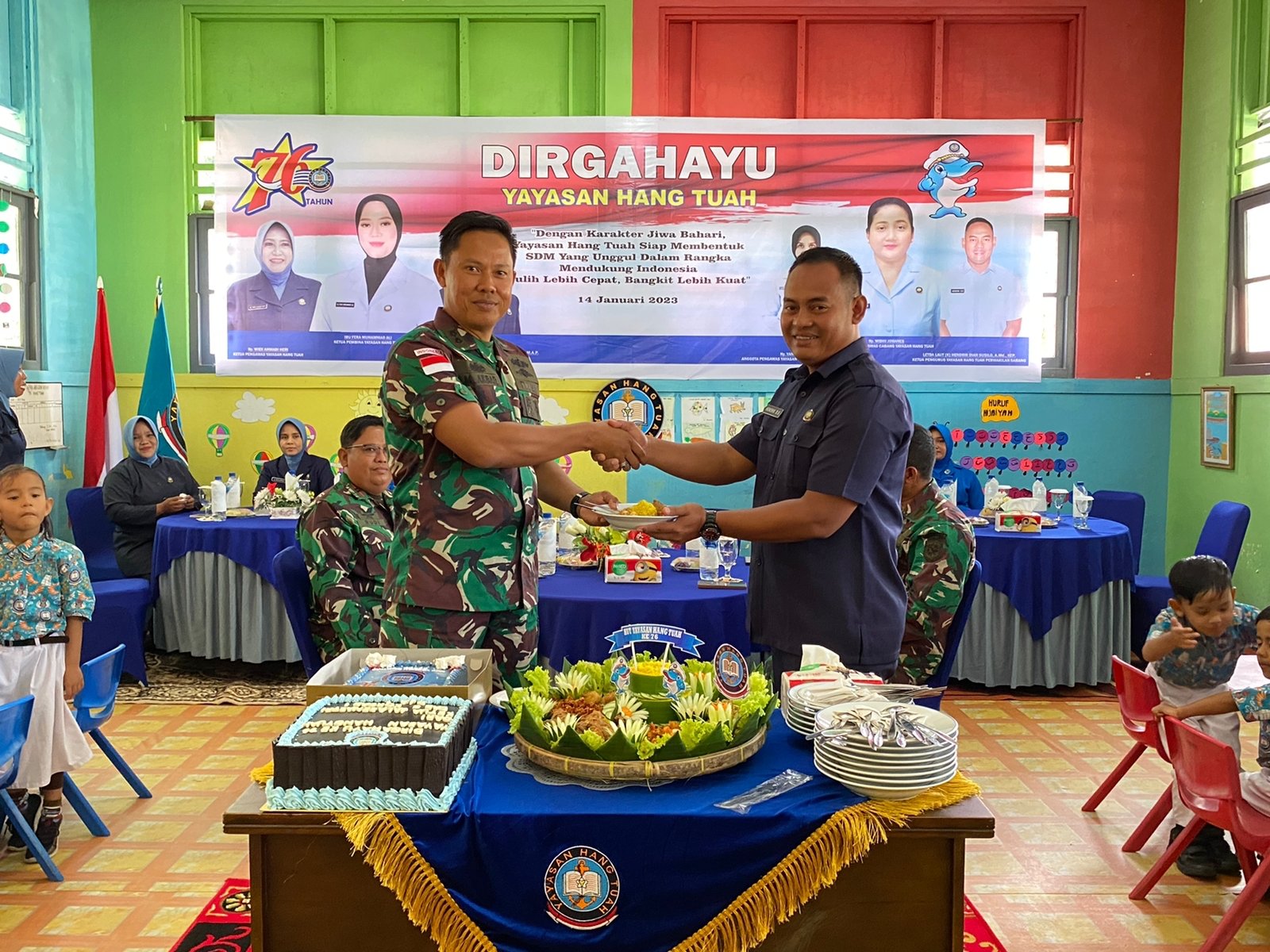 TNI AL, Sabang,- Dalam rangka memperingati Hari Ulang Tahun Ke-76 Yayasan Hang Tuah Tahun 2023, TK Hang Tuah Sabang melaksanakan acara Pemotongan Tumpeng dan Makan Ikan Bersama, bertempat di TK Hang Tuah Sabang, Jl. Yos Sudarso, Gampong Kuta Ateuh, Kecamatan Sukakarya, Kota Sabang, Selasa (17/01/2023).