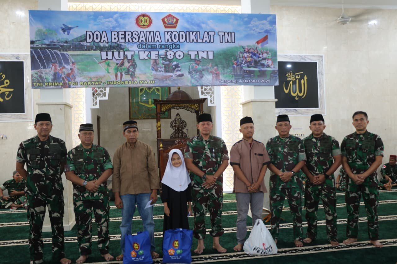 refubliknews.com,- Tangsel, Dalam rangka Hut ke-80 Tentara Nasional Indonesia, Kodiklat TNI gelar doa bersama dan santunan kepada anak yatim di Masjid Al-Muhajirin Kodiklat TNI, Serpong Tangerang Selatan, Sabtu (4/10/2025),