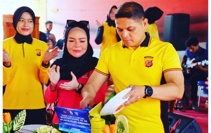 Usai olahraga bersama, pemotongan tumpeng oleh Kapolres Purwakarta sebagai bentuk rasa syukur atas HUT Lalulintas Bhayangkara ke-68 tahun 2023.