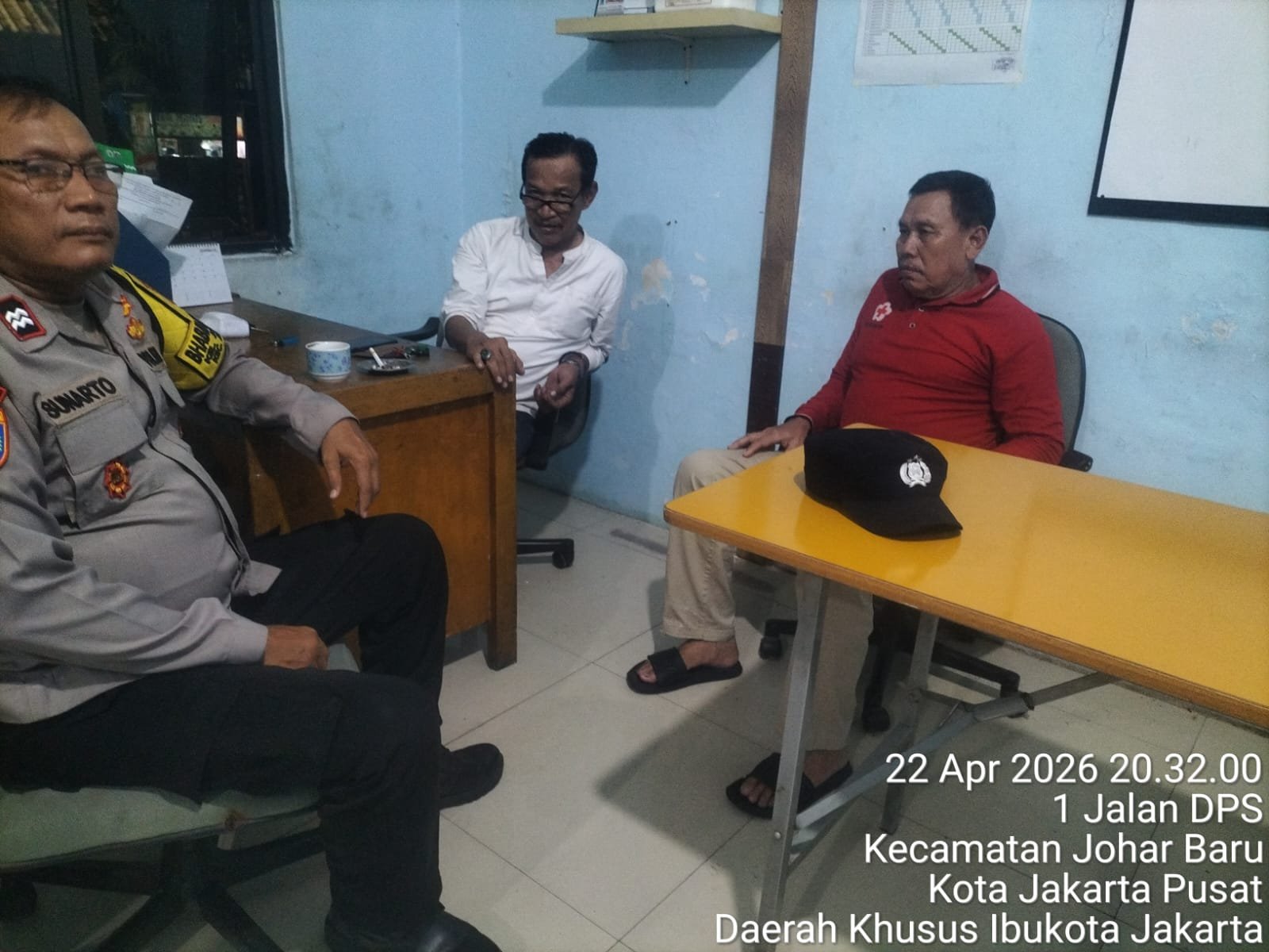 Jakarta Pusat – Upaya menjaga stabilitas keamanan terus dilakukan jajaran Polsek Johar Baru melalui kegiatan cooling system, patroli wilayah, dan door to door system (DDS) sambang warga. Kegiatan tersebut berlangsung pada Rabu malam, 22 April 2026, pukul 20.30 WIB di Sekretariat RW 06, Jalan Percetakan Negara II, Kelurahan Johar Baru, Kecamatan Johar Baru, Jakarta Pusat.