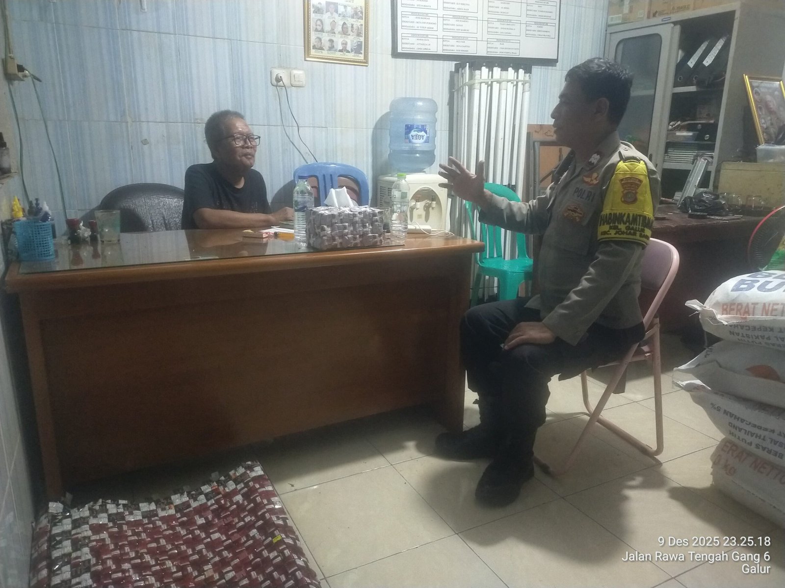 Kegiatan yang berlangsung pada pukul 23.00 WIB tersebut dilakukan oleh Bhabinkamtibmas Kelurahan Galur, Aiptu Baktiar, dengan bertemu langsung Suroso, selaku Ketua RW 06 Galur.