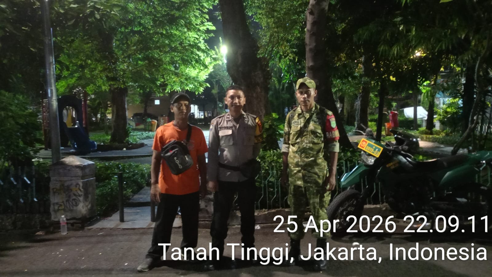 Kegiatan yang dimulai pukul 21.15 WIB tersebut berlangsung di Taman Lapangan 1, Jalan Arjuna RT 05/RW 05. Hadir dalam kegiatan tersebut Bhabinkamtibmas Kelurahan Tanah Tinggi AIPDA Tangguh bersama Babinsa SERTU Kader, yang secara langsung menyambangi Poskamling di wilayah RT 12 RW 05 serta berdialog dengan warga, salah satunya Bapak Surohman.