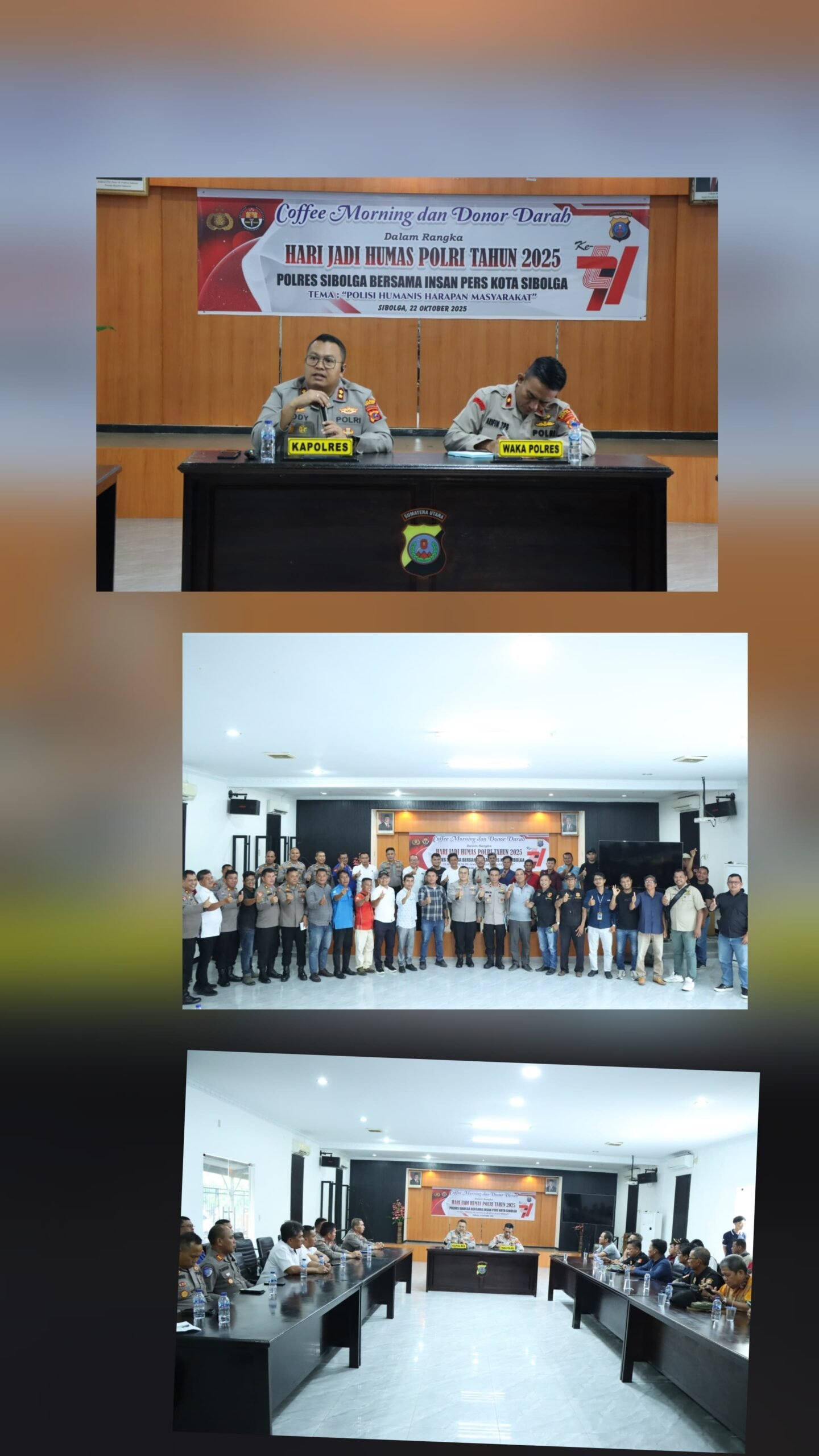 SIBOLGA – Dalam rangka memperingati Hari Jadi Humas Polri ke-74 tahun 2025, Polres Sibolga menggelar kegiatan Coffee Morning dan donor darah bersama insan pers Kota Sibolga. Acara yang berlangsung di Aula Dr. HM. Jasin Polres Sibolga pada Rabu, 22 Oktober 2025 ini berlangsung dengan suasana hangat, penuh keakraban dan semangat kebersamaan.