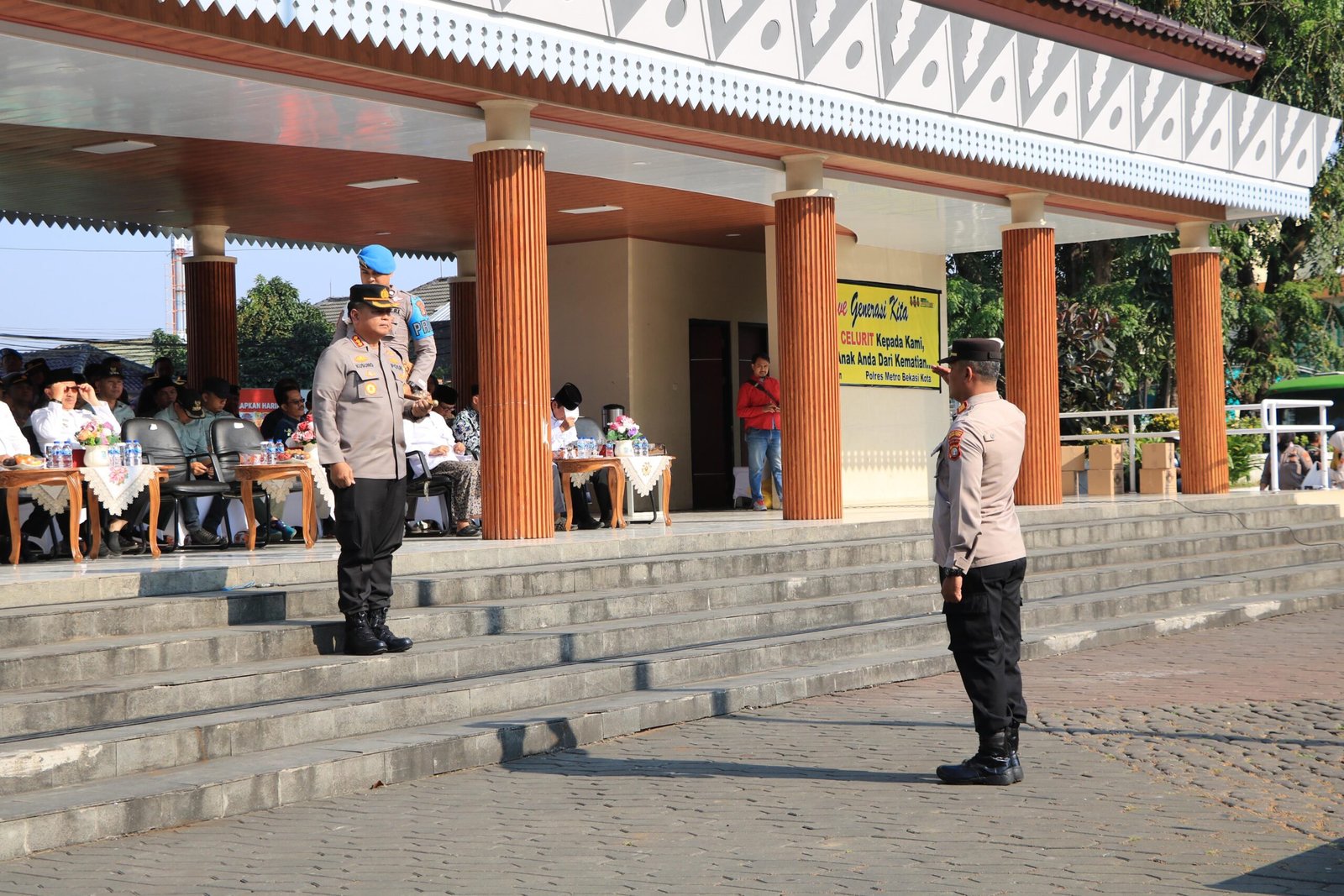 Kegiatan yang diinisiasi oleh Kapolres ini dihadiri oleh Wali Kota Bekasi Dr. Tri Adhianto Cahyono, Wakil Wali Kota Abdul Harris Bobihoe, M.Sc., Dandim 0507/Bekasi yang diwakili Kasdim Letkol Inf Erlangga Gassing, serta perwakilan Kajari, Sekda Kota Bekasi, Ketua MUI, Ketua FKUB, dan seluruh pimpinan Organisasi Masyarakat, LSM, dan Organisasi Kepemudaan.