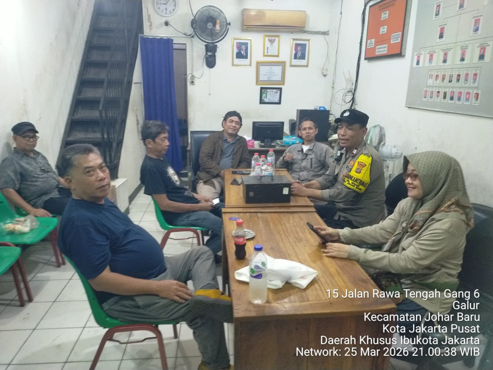 Jakarta Pusat – Dalam upaya menjaga situasi keamanan dan ketertiban masyarakat tetap kondusif, Bhabinkamtibmas Kelurahan Galur Aiptu Baktiar melaksanakan kegiatan sambang dan halal bihalal bersama Ketua RW 04 dan para Ketua RT di wilayah Kelurahan Galur, Kecamatan Johar Baru, Rabu (25/3/2026) malam.