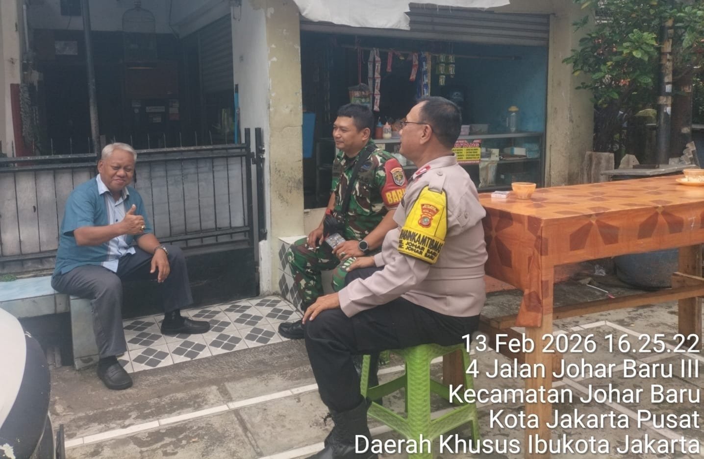 refubliknews.com, || Jakarta Pusat – Guna memperkuat keamanan lingkungan berbasis masyarakat, Bhabinkamtibmas Kelurahan Johar Baru Aiptu Sunarto bersama Babinsa melaksanakan patroli wilayah dan sambang warga di RT 02/RW 11, Jalan Johar Baru III, Kecamatan Johar Baru, Jakarta Pusat, Jumat (13/2/2026) pukul 16.30 WIB.