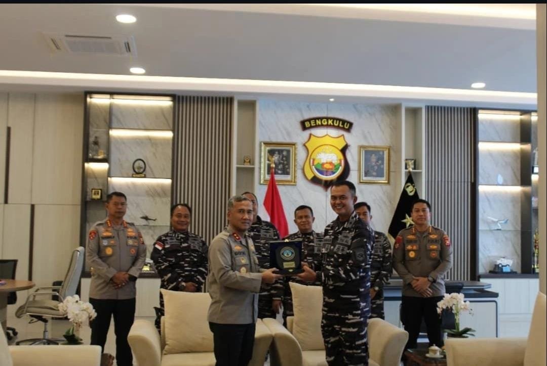 refubliknews.com, || TNI AL, Bengkulu,- Komandan Pangkalan TNI Angkatan Laut (Danlanal) Bengkulu Letkol Laut (P) Nurwahidin, S.H., M.Tr. Opsla., didampingi Perwira Staf, melaksanakan kunjungan silaturahmi (Courtesy Call) kepada Kepala Kepolisian Daerah (Kapolda) Bengkulu Irjen Pol Mardiyono, S.I.K., M.Si., bertempat di Markas Kepolisian Daerah Bengkulu, Jalan Adam Malik, Sidomulyo, Gading Cempaka, Bengkulu, Senin (15/9/2025).