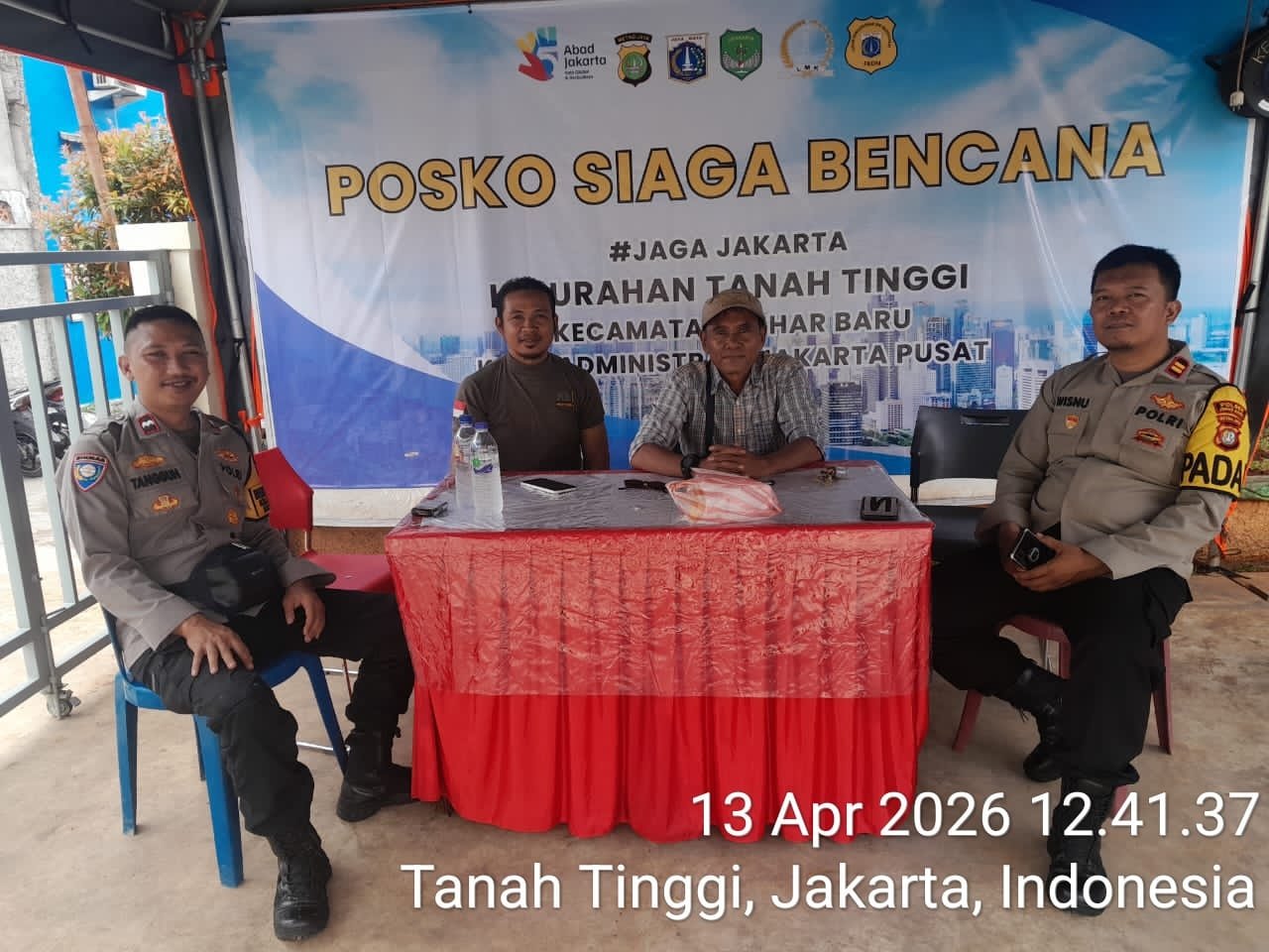 Kegiatan tersebut dilaksanakan pada Senin, 13 April 2026, pukul 11.30 WIB, bertempat di depan Kantor Kelurahan Tanah Tinggi, Jalan Kramat Pulo Gundul RT 06/013, Kecamatan Johar Baru, Jakarta Pusat. Kegiatan ini dihadiri oleh Ipda Wisnu selaku Panit Intelkam bersama Aipda Tangguh selaku Bhabinkamtibmas Kelurahan Tanah Tinggi.
