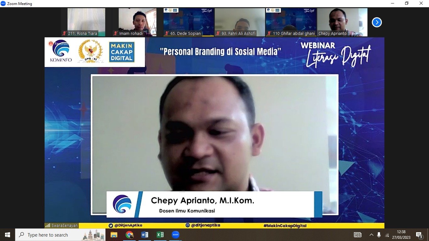 “Personal branding bisa menjadi tolak ukur seseorang untuk percaya terhadap seseorang, produk ataupun jasa,” kata Kresna selaku narasumber pada Webinar Literasi Digital yang diselenggarakan oleh Direktorat Aplikasi dan Informatika Kemkominfo RI dengan tema ‘Personal Branding di Sosial Media’, secara virtual. Jakarta (27/03/2023).