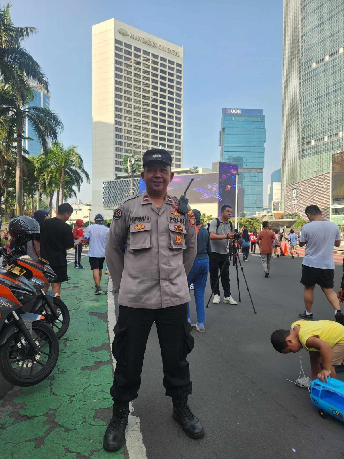 CFD di Bundaran HI selalu menjadi pusat perhatian masyarakat ibu kota setiap minggunya. Ribuan warga dari berbagai kalangan datang untuk berolahraga, berjalan santai, hingga sekadar menikmati suasana pagi Jakarta yang bebas dari kendaraan bermotor. Dalam kegiatan ini, Aipda Himawan bersama jajaran personel Polsek Metro Menteng secara aktif melakukan patroli dialogis, menyapa warga, serta menyampaikan imbauan kamtibmas secara langsung.