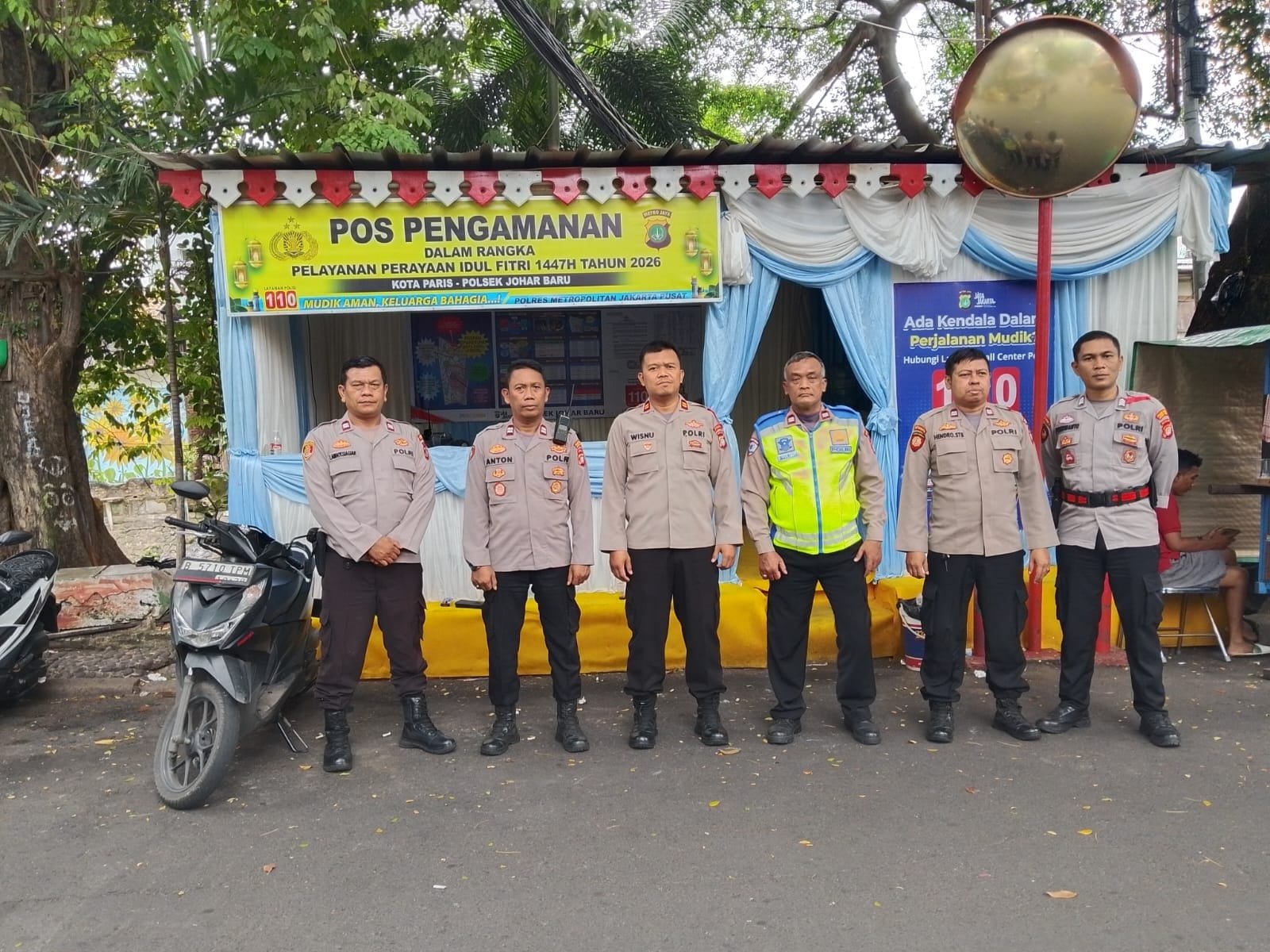 Jakarta Pusat – Dalam rangka pengamanan arus mudik dan perayaan Idulfitri, jajaran kepolisian menyiagakan personel di Pos Pengamanan (Pospam) Operasi Ketupat Jaya 2026 yang berlokasi di kawasan Kota Paris, Kelurahan Tanah Tinggi, Kecamatan Johar Baru, Rabu (25/3/2026).
