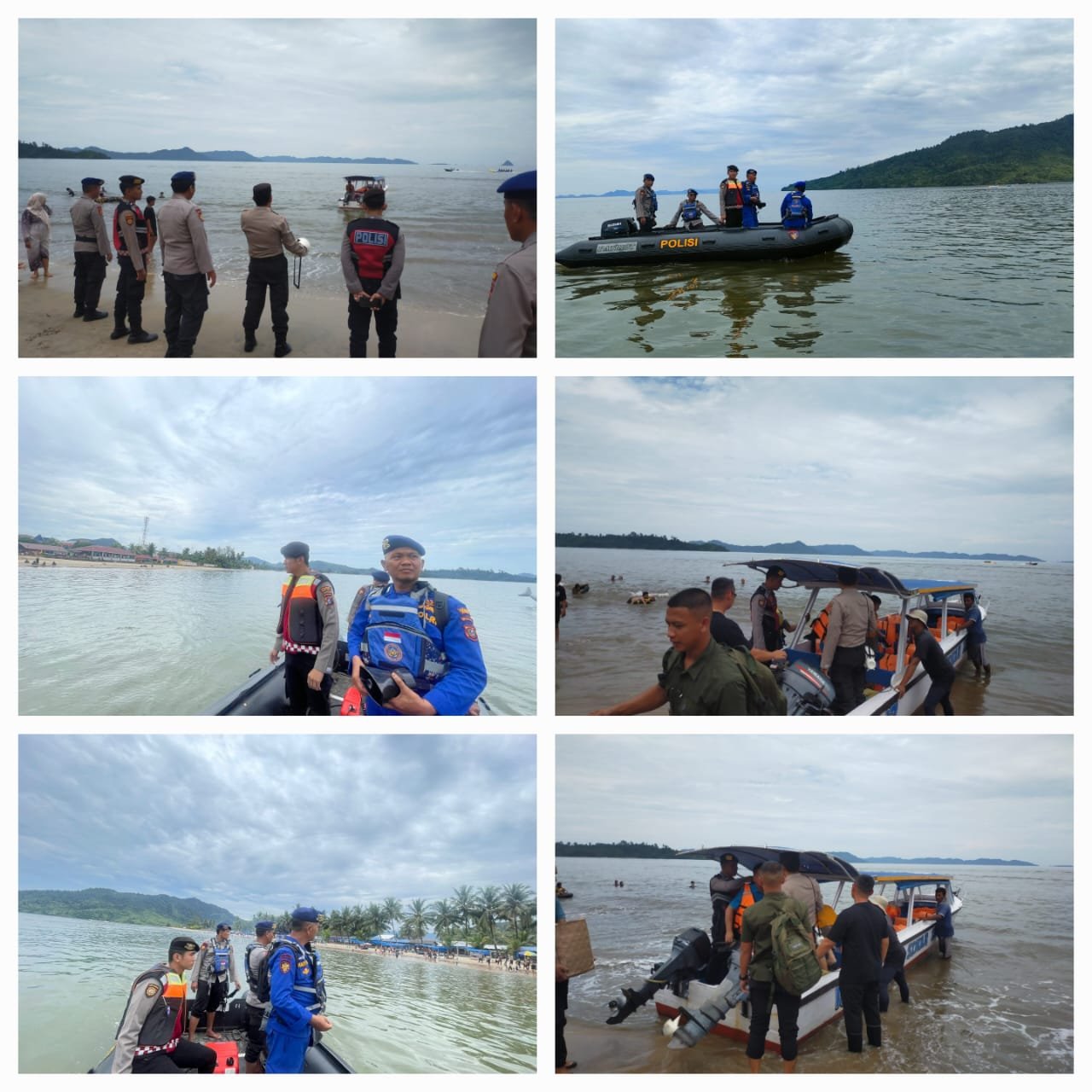 SIBOLGA – Pada hari Minggu, tanggal 30 Juni 2024, pukul 09.00 WIB, sejumlah Personil Gabungan dari Satuan Polisi Perairan dan Udara (Satpolairud) Polres Sibolga, Unit Markas Ditpolairud Polda Sumut, serta Satuan Samapta Polres Tapteng, melaksanakan Patroli Perairan dan Pengamanan di Obyek Wisata Pantai Pandan dan sekitarnya, Kabupaten Tapteng.