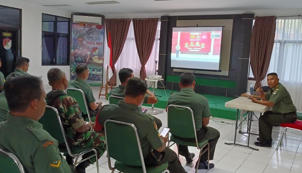 Kodam Jaya, Kota Bekasi – Bertempat di Aula Makodim 0507/Bekasi Jl.Jend Sudirman, Kel.Kranji, Kecamatan Bekasi Barat, Kota Bekasi, personil Babinsa Kodim 0507/Bekasi sebanyak 50 orang mengikuti Pembukaan Literasi Digital Sektor Pemerintahan di TNI Bidang Media dan Politik. Kamis (15/6/2023).