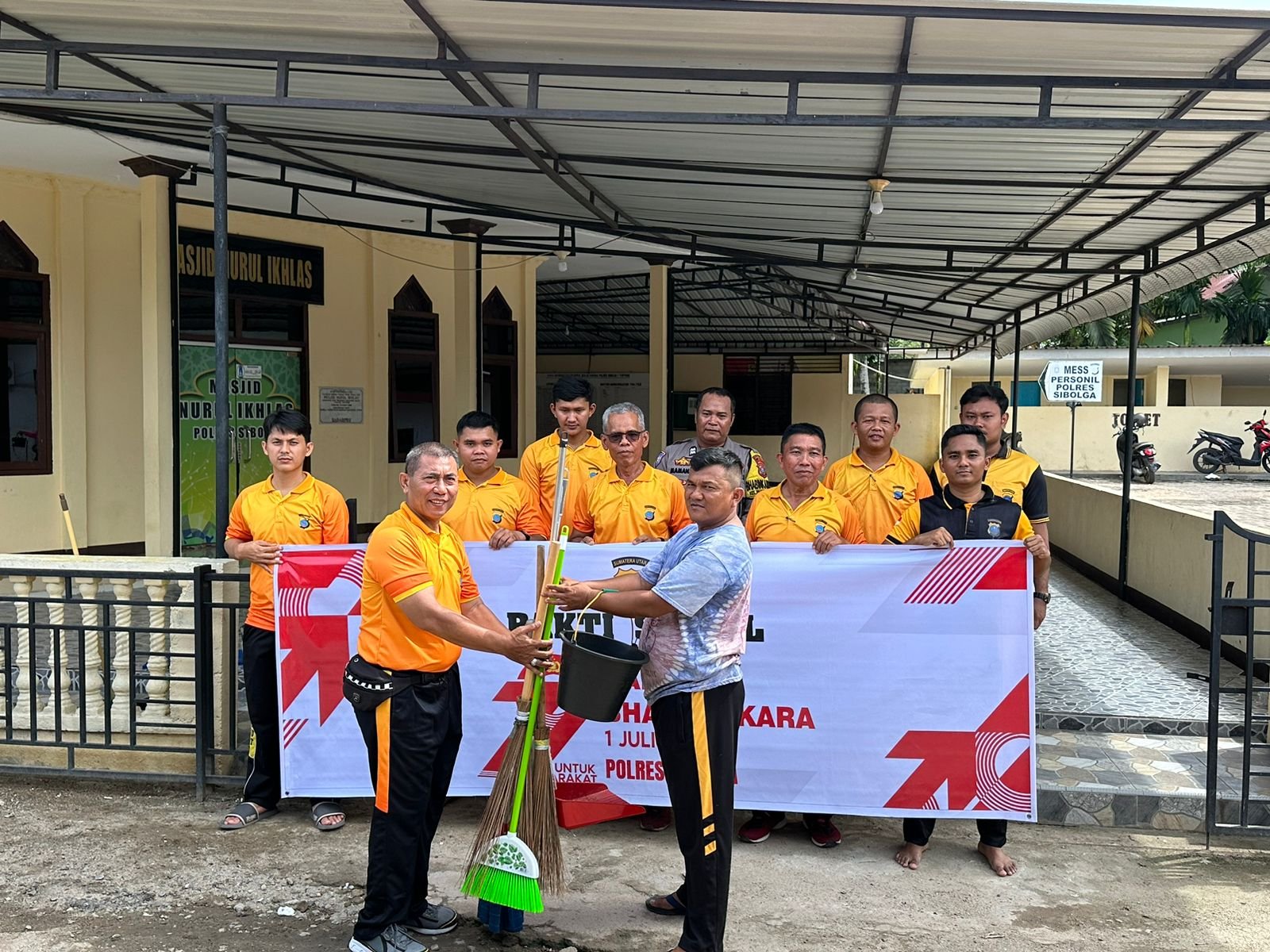 SIBOLGA – Dalam Rangka Hari Bhayangkara (HUT) Ke-79 yang jatuh pada 1 Juli 2025, Kepolisian Resor Sibolga (Polres Sibolga) menggelar Bakti Sosial (Baksos) membersihkan Masjid, di wilayah hukum Polres Sibolga, yang dipimpin oleh Kapolres Sibolga AKBP Eddy Inganta, SH, SIK, MH, bersama Ketua Bhayangkari Cabang Sibolga Ny. Laura Eddy Inganta, Waka Polres Sibolga, PJU dan Personel Polres Sibolga. Jumat, (13/06/2025) pukul 09.00 wib sampai selesai.