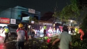 Depok – Piket Patroli Polsek Sukmajaya dengan sigap melakukan pengecekan TKP terkait pohon tumbang di Jalan Raya Bogor, tepatnya di depan Perumahan Deppen, RT.02/02, Kelurahan Cisalak, Kecamatan Sukmajaya, Depok.
