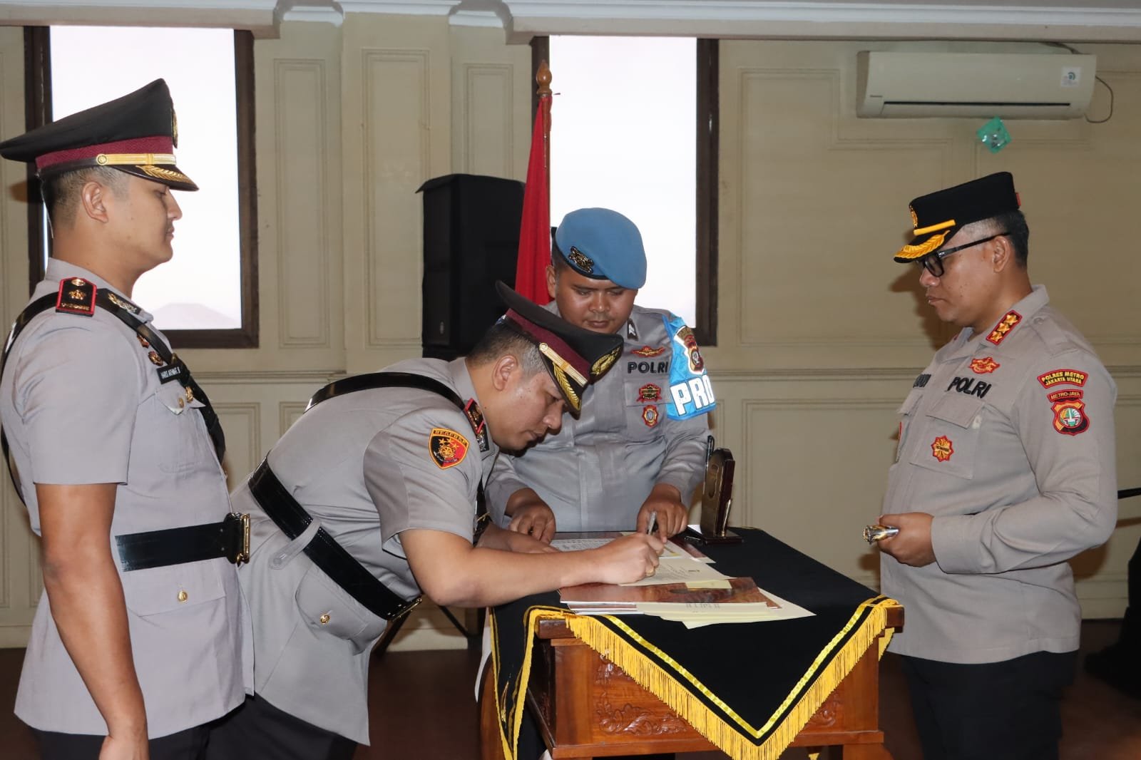 Kapolres Metro Jakarta Utara Kombes Pol Gidion Arif Setyawan memimpin upacara Serah Terima Jabatan (Sertijab) jajaran Polres Metro Jakarta Utara di Aula Wira Satya, Kamis (24/8/2023).