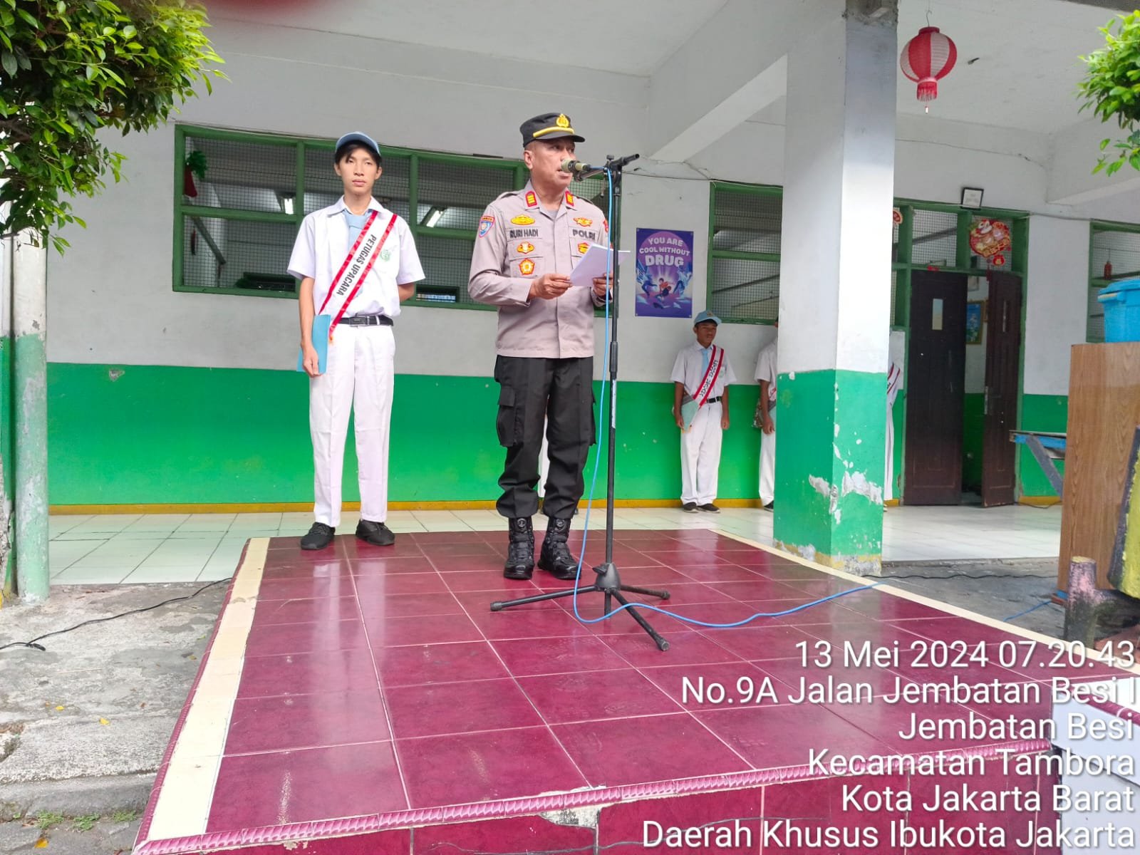 Dalam upacara tersebut, Kabag Bin Ops Dit Binmas PMJ, AKP Ruri Hadi, tampil sebagai inspektur upacara dan didampingi Kanit Bintibsos Sat Binmas Polres Metro Jakarta Barat Iptu Aris, Kanit Binmas Polsek Tambora Akp Bambang Gunaedi dan Bhabinkamtibmas Kel Jembatan Besi Aiptu Rois Rosito