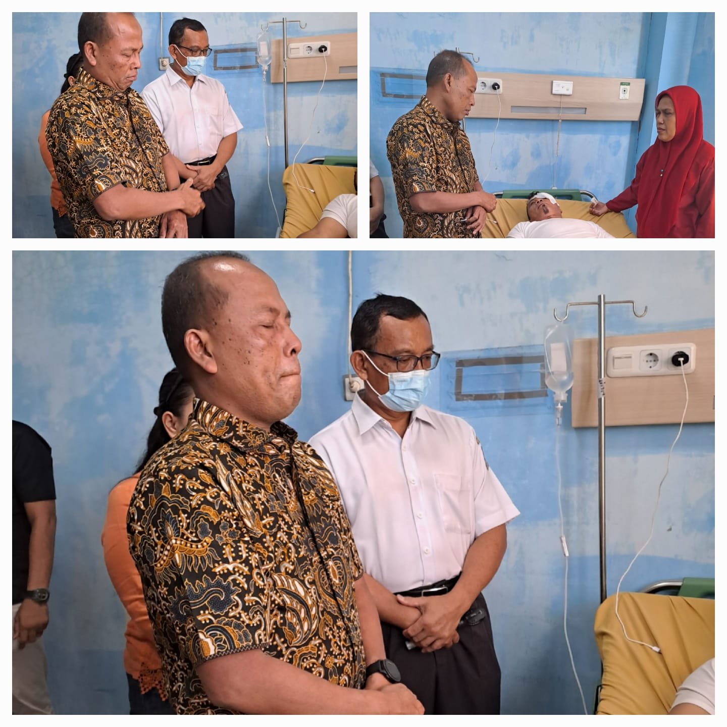 Pj Bupati, Sugeng Riyanta didampingi oleh istri Ny. Ade Sugeng Riyanta, Plh Direktur Umum RSUD Pandan dr. Fadly Saputra dan Kabag Umum Lisna Panjaitan melihat keadaan Edianto pasca pengeroyokan tanggal 14 Februari 2024 yang lalu di ruangan kamar inap RSUD Pandan, Sabtu (17/2/2024) pukul 11.00 WIB.
