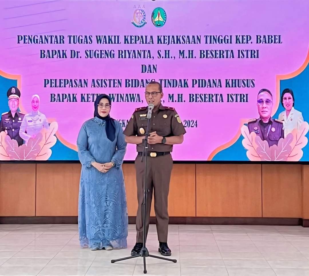 Berdasarkan Keputusan Jaksa Agung Republik Indonesia tersebut, pada hari ini Selasa 02 April 2024, telah dilaksanakan Pengantar Tugas Wakil Kepala Kejaksaan Tinggi Kepulauan Bangka Belitung, Dr. Sugeng Riyanta,SH.,MH yang mendapatkan promosi jabatan menjadi Wakil Kepala Kejaksaan Tinggi Jawa Tengah, dimana Kegiatan ini dihadiri langsung oleh Kepala Kejaksaan Tinggi Kepulauan Bangka Belitung, Asep Maryono,SH beserta seluruh pegawai Kejaksaan Tinggi Kepulauan Bangka Belitung.