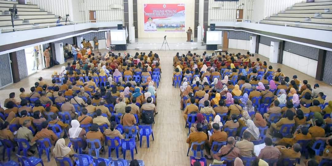 PANDAN-Pemerintah Kabupaten (Pemkab) Tapanuli Tengah (Tapteng) melaksanakan Sosialisasi Netralitas ASN Kepala Sekolah SD dan SMP sederajat, menjelang Pemilihan Kepala Daerah serentak di Kabupaten Tapanuli Tengah tahun 2024 Sosialisasi Netralitas ASN Kepala Sekolah SD dan SMP sederajat ini yang dipimpin oleh Pj. Bupati Tapanuli Tengah, Dr. Sugeng Riyanta, SH, MH, yang dilaksanakan secara virtual dengan aplikasi Zoom, bertempat di Gedung Serbaguna Pandan. pada Selasa (15/10/2024).