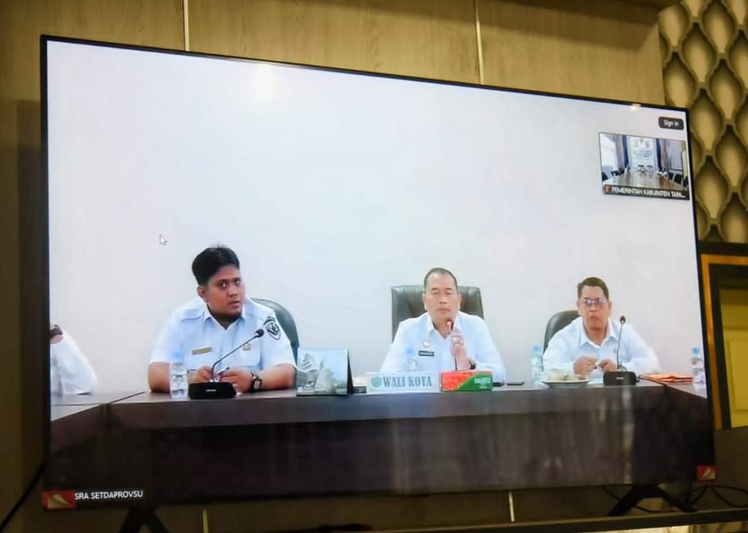dalam memaknai Spirit PON XXI Aceh- Sumut 2024, menuju Sumatera Utara (Sumut) yang Mantap dan Harmoni, secara daring dengan aplikasi Zoom, di Ruang Rapat Garuda Kantor Bupati Tapteng, Rabu (21/08/2024).