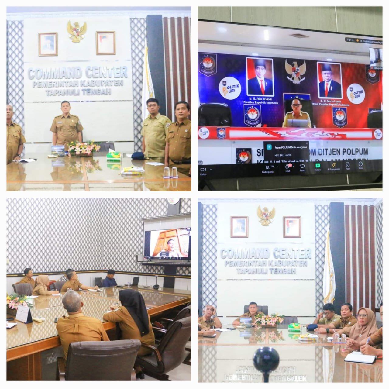 PANDAN-Plt. Asisten Pemerintahan dan Kesra Sekretariat Daerah Kabupaten (Setdakab) Tapanuli Tengah (Tapteng), Erman Syahrin Lubis, S.Sos, M.AP, mengikuti Rapat Koordinasi Persiapan pelaksanaan Kegiatan Gerakan Pembagian 10 Juta Bendera Bendera Merah Putih Tahun 2024, secara virtual melalui Zoom Meeting bertempat di Ruang Rapat Garuda Kantor Bupati Tapteng, Senin (27/015/2024).