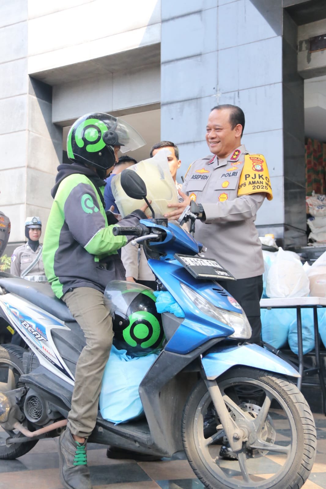 refubliknews.com,- Jakarta – Polda Metro Jaya menggelar kegiatan bakti sosial di Mapolda Metro Jaya, Senin (8/9/2025). Kegiatan ini dihadiri langsung Kapolda Metro Jaya Irjen Pol Asep Edi Suheri yang ikut membagikan helm kepada para pengemudi ojek online.