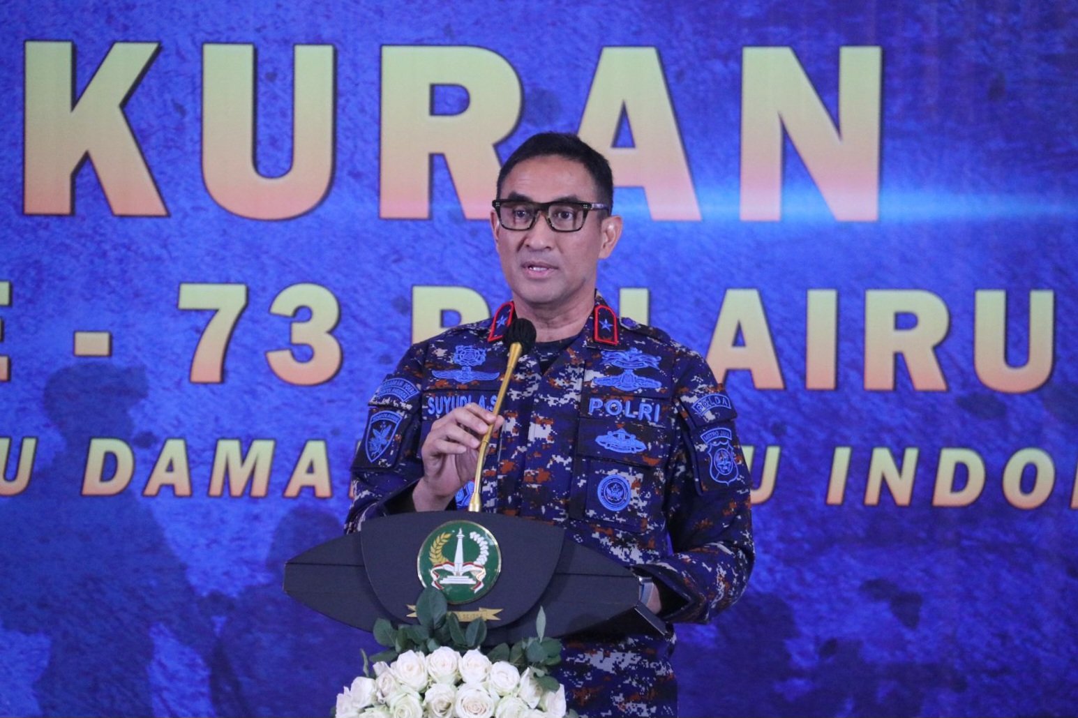 Dalam kesempatan tersebut Suyudi mengucapkan selamat Ulang Tahun Ke-73 kepada Korp Polairud Baharkam Polri.