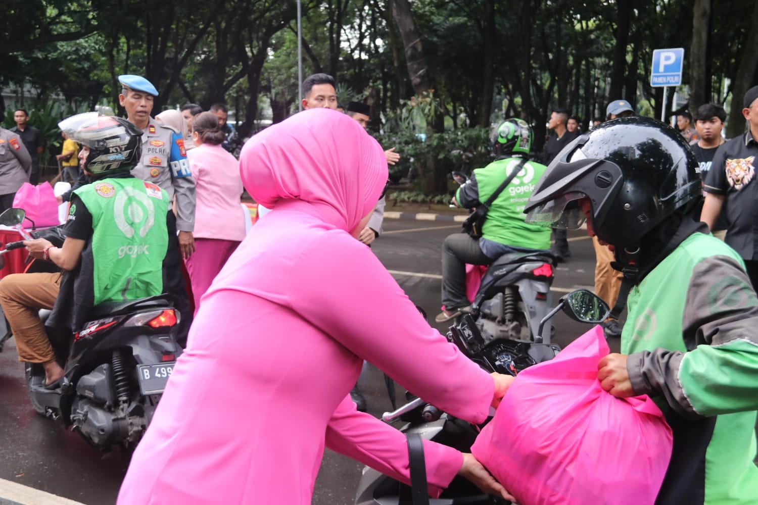Dalam kegiatan bakti sosial, sebanyak 3.000 paket sembako dibagikan oleh Polda Metro Jaya dan Polres jajaran kepada masyarakat yang membutuhkan, bantuan ini secara simbolis diberikan kepada para pengemudi ojek online (ojol).