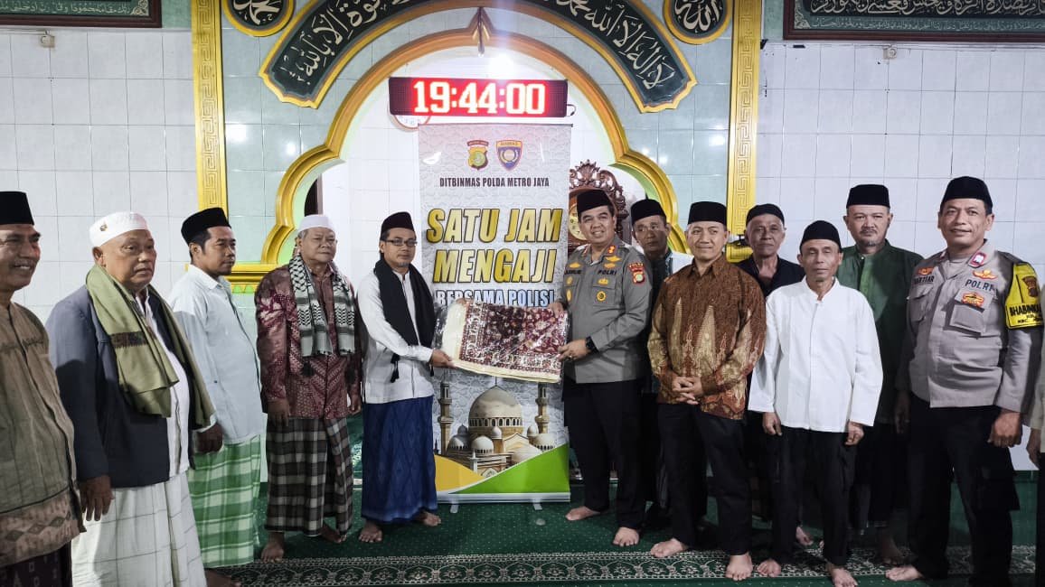 Jakarta – Polda Metro Jaya menggelar program Satu Jam Mengaji Bersama Polisi di Masjid Uswatun Hasanah, Galur, Johar Baru, Jakarta Pusat, Rabu (10/12/2025). Kegiatan yang berlangsung sore hingga malam ini digelar sebagai bagian dari strategi cooling system untuk menjaga situasi kamtibmas tetap kondusif.