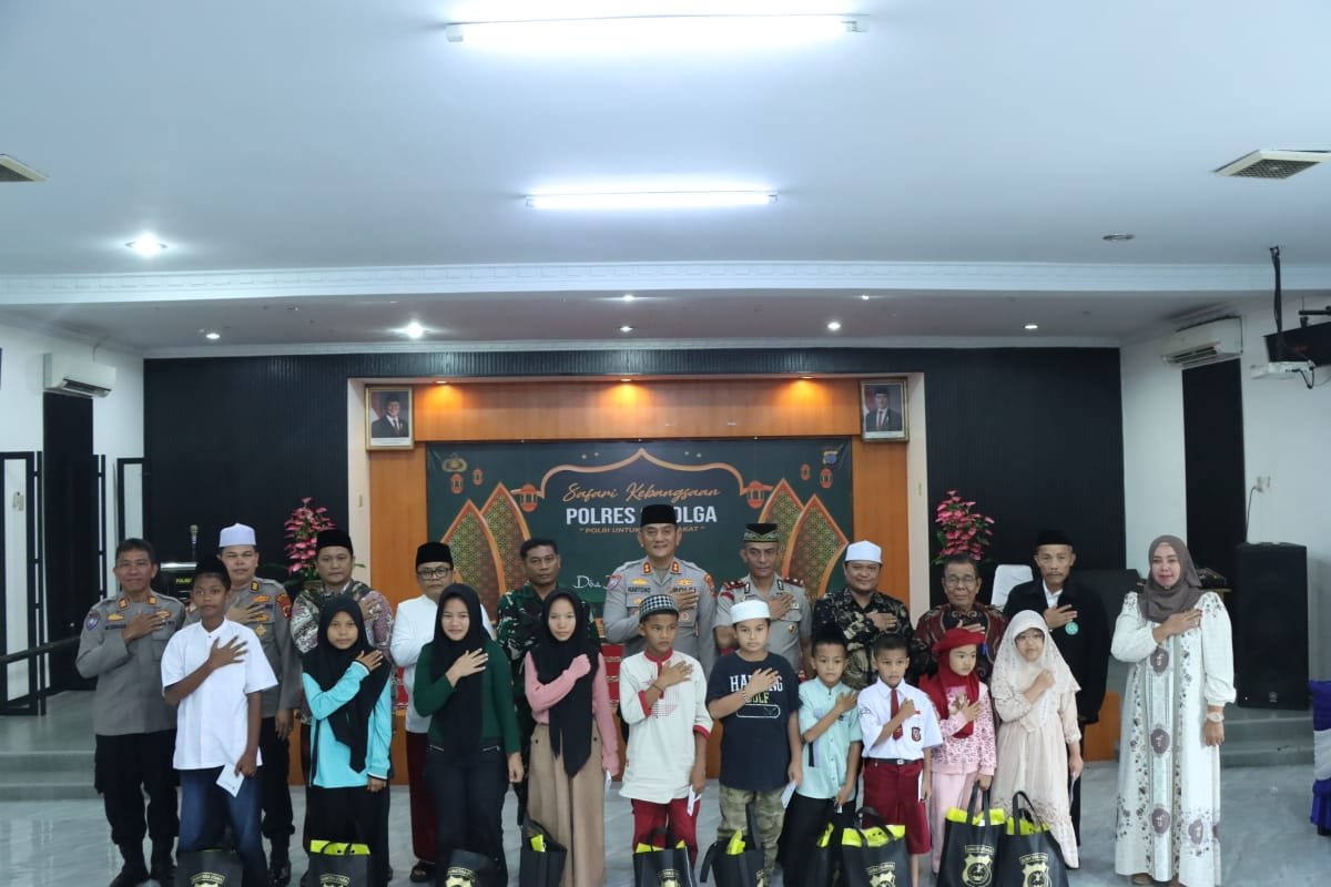 Sebagai bentuk kepedulian sosial, Polres Sibolga bersama Tim Safari Kebangsaan juga menyerahkan santunan dan paket bahan pokok kepada anak yatim piatu. Setelah sesi foto bersama, acara dilanjutkan dengan ceramah agama yang dibawakan oleh K.H. Akhmad Khambali, S.E., M.M., dan Romo K.H. Ali Hasyim. Kegiatan ditutup dengan doa yang dipimpin Kyai Muhtarom, S.Ag.