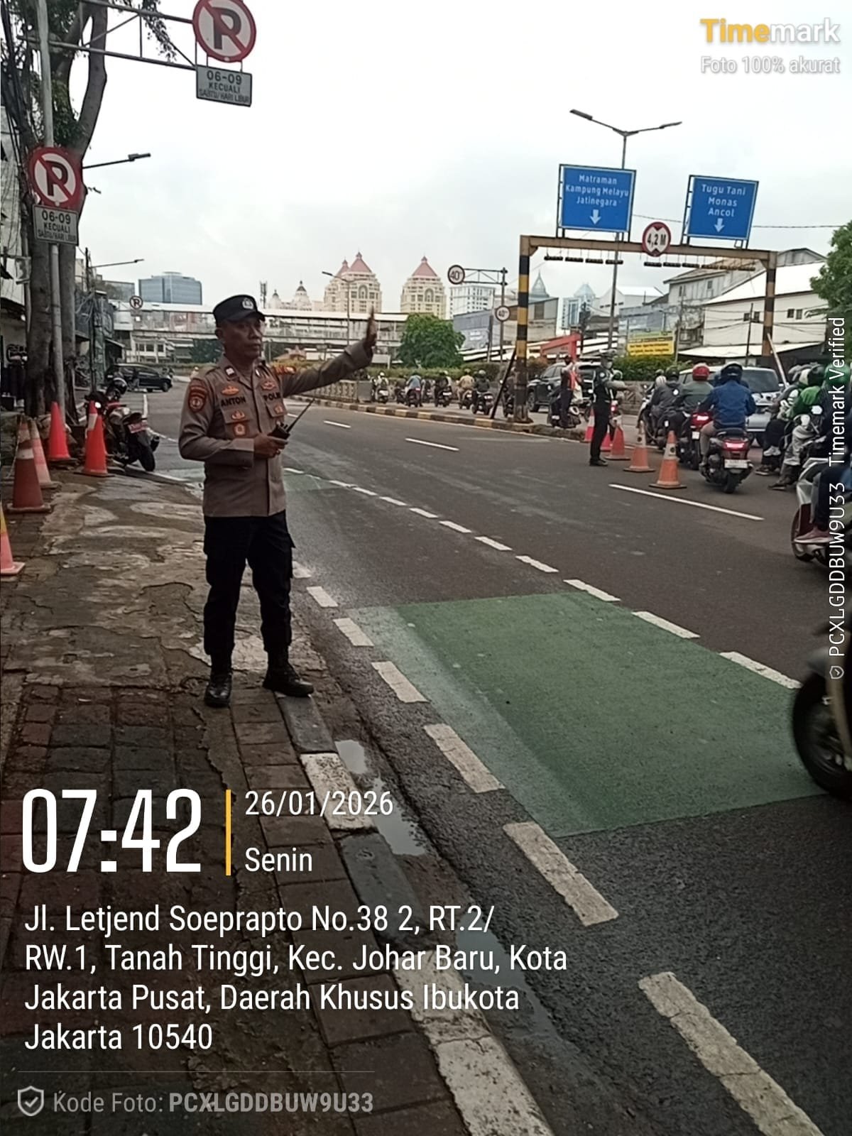 Kegiatan pengaturan lalu lintas tersebut dilaksanakan sejak sore hari dengan melibatkan personel di berbagai titik rawan kepadatan. Kapolsek Johar Baru Kompol Saiful Anwar, didampingi Kanit Propam Ipda Cornelius Sitorus, melakukan pengecekan langsung ke lapangan guna memastikan seluruh personel berada di pos masing-masing dan menjalankan tugas secara optimal.