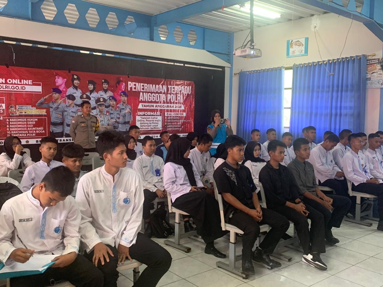 Sosialisasi ini bertujuan untuk memberikan informasi mengenai persyaratan, tahapan seleksi, serta peluang berkarier di Kepolisian Republik Indonesia. Peserta yang hadir tampak antusias dalam menyimak penjelasan serta mengajukan berbagai pertanyaan terkait proses seleksi.