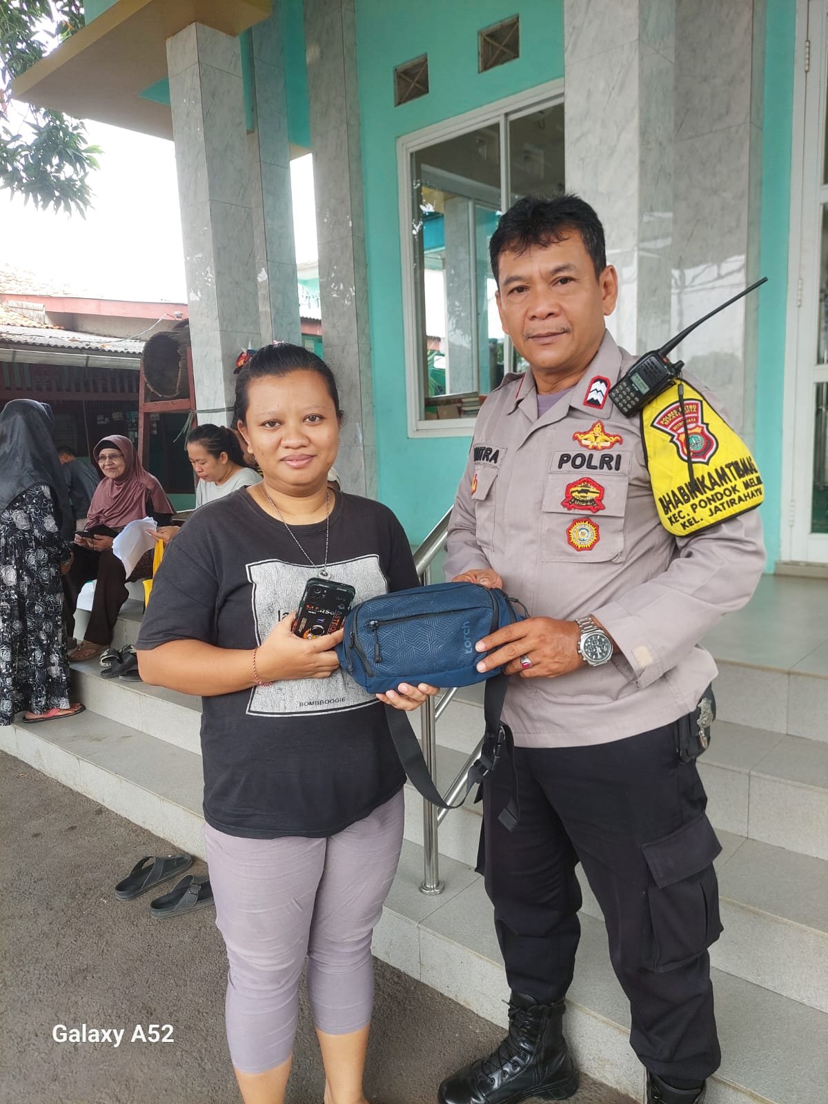 Bhabinkamtibmas Jatirahayu Aiptu Mintra kemudian menghubungi Ketua RT 04/02, Bapak Dedi Sutardi, untuk mengkonfirmasi identitas pemilik tas.