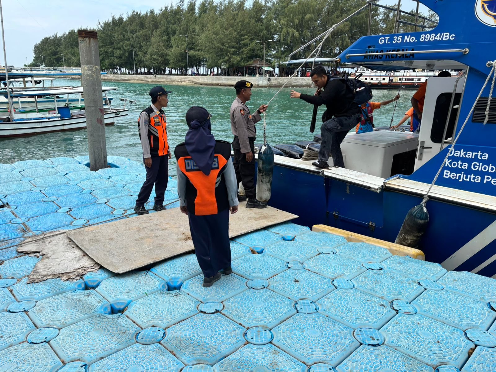 “Kita hadir untuk memberikan rasa aman dan nyaman. Selain membantu wisatawan yang baru tiba, kita juga mengawasi setiap barang yang masuk ke wilayah Pulau Tidung guna mencegah peredaran barang terlarang seperti narkoba dan minuman keras,” jelas AKP Sanyata.