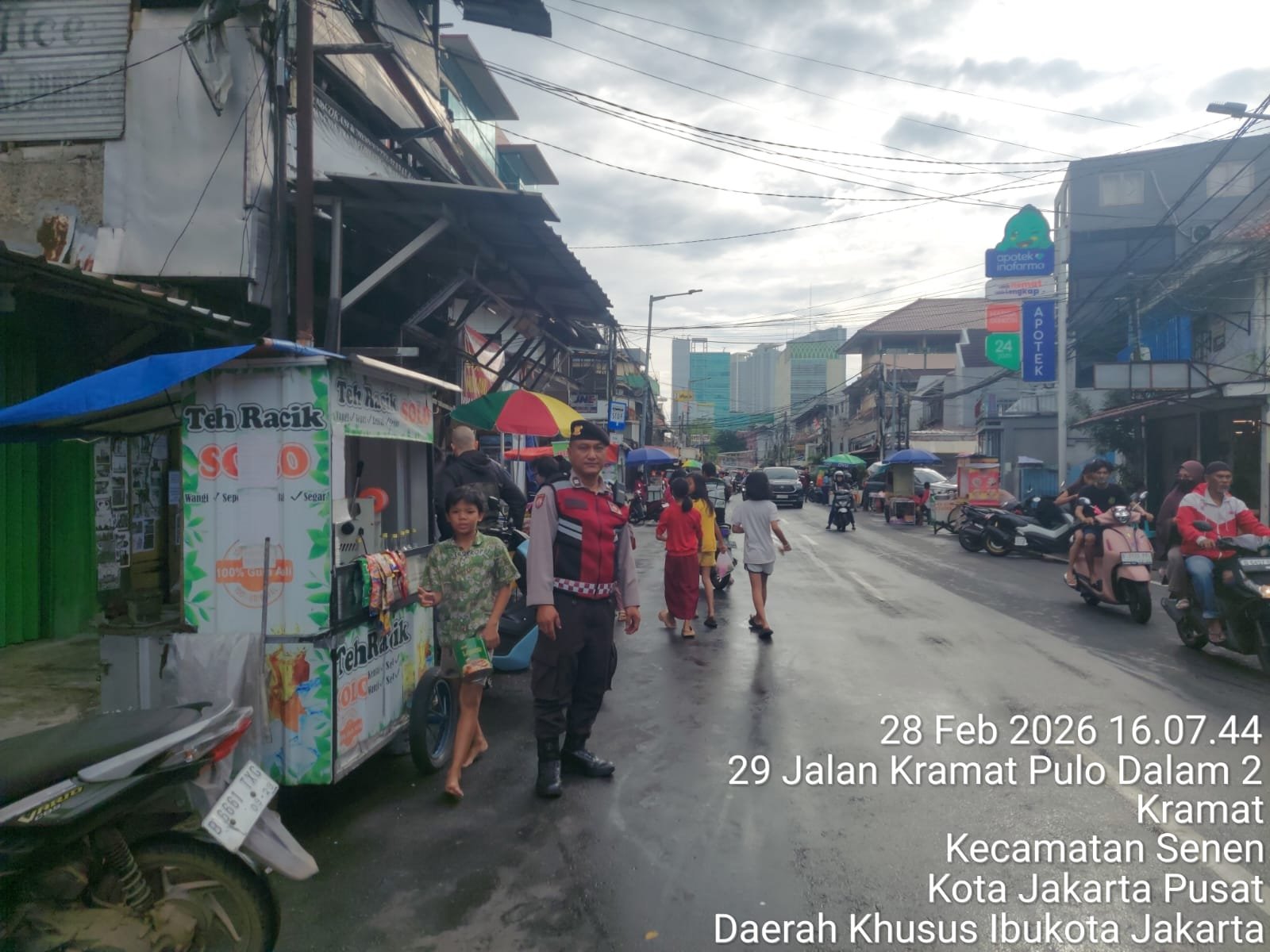 Jakarta pusat, — Petugas kepolisian melakukan pengecekan sekaligus pengamanan kegiatan pasar tumpah di wilayah Kelurahan Paseban, Kecamatan Senen, Jakarta Pusat, pada Sabtu (28/2/2026) sore. Kegiatan ini dilakukan untuk memastikan aktivitas masyarakat berjalan aman dan tertib.