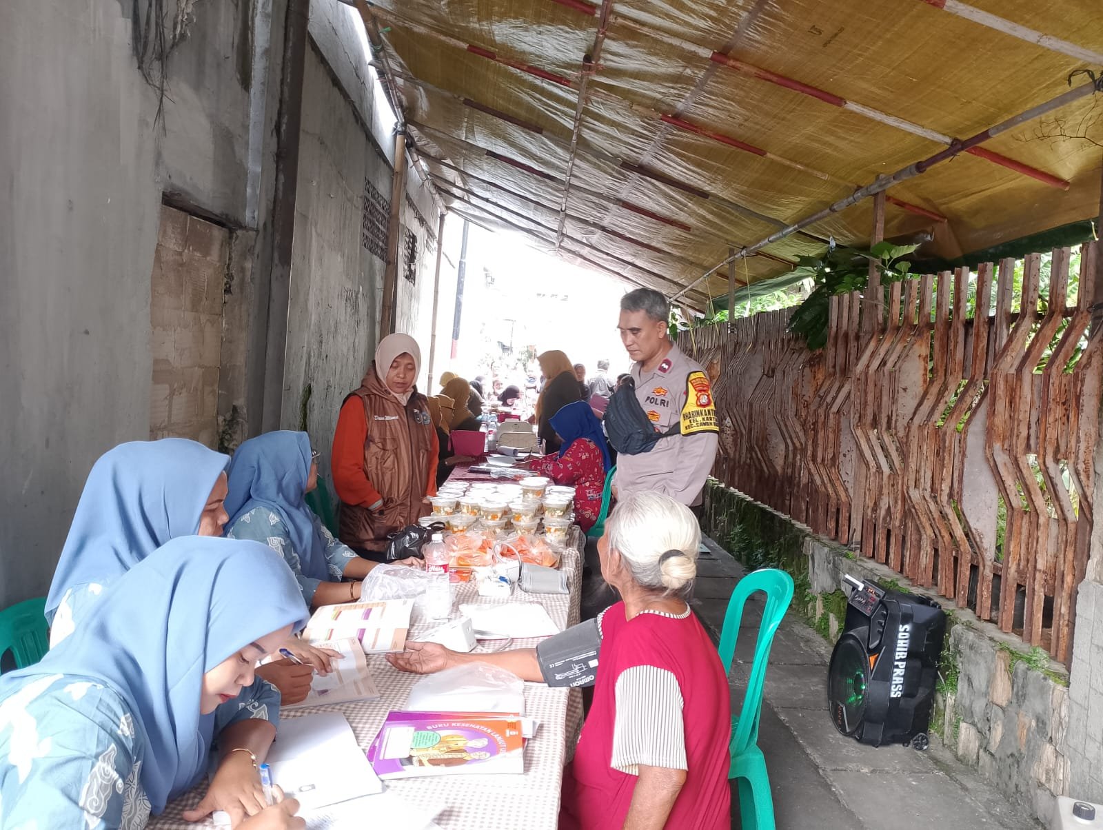 Dalam kegiatan tersebut, petugas kesehatan melakukan pemeriksaan tumbuh kembang balita serta pemantauan kesehatan lansia. Layanan yang diberikan meliputi pendaftaran, penimbangan, pencatatan perkembangan kesehatan, pemeriksaan tekanan darah, serta pemberian makanan tambahan bergizi untuk balita.