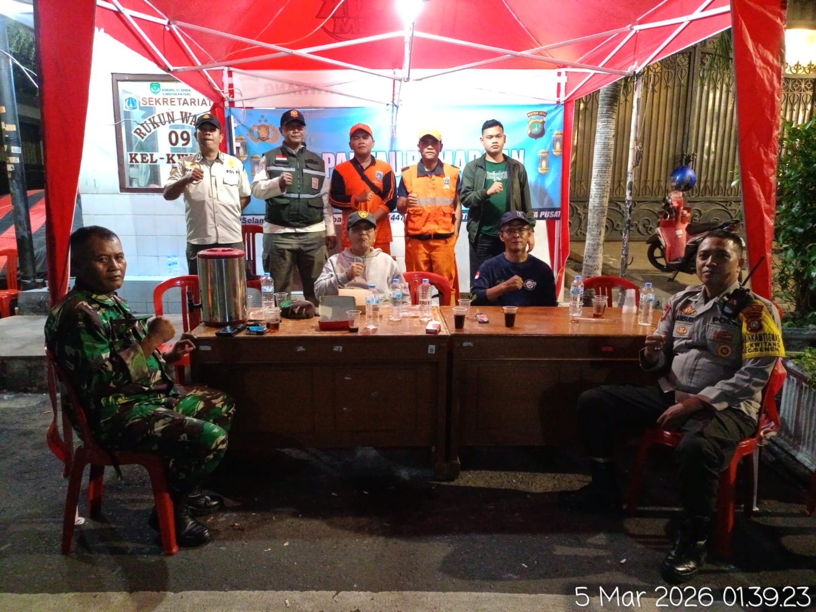 Ps. Kanit Sabhara Polsek Senen, Ipda Ngatiman, bersama Bhabinkamtibmas Kelurahan Kwitang Aipda Samsudin hadir langsung dalam kegiatan tersebut. Selain itu, turut hadir unsur Pol PP, Ketua RW 01, para Ketua RT, FKDM, LMK, Satlinmas, serta PPSU Kelurahan Kwitang.