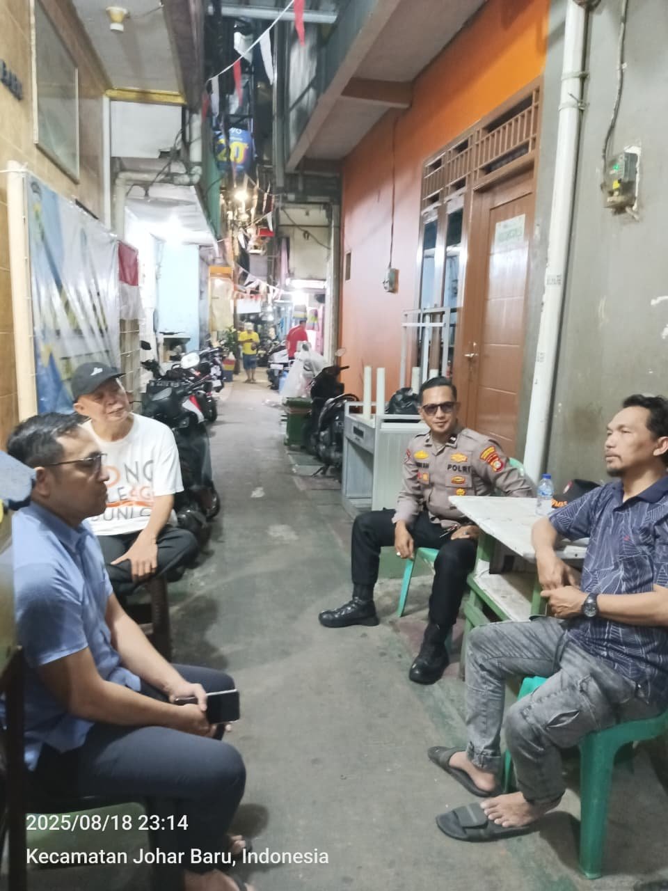 refubliknews.com, || Jakarta Pusat – Dalam rangka menjaga keamanan dan ketertiban masyarakat, Bhabinkamtibmas Kelurahan Kampung Rawa, Aipda Ikhwan, bersama Babinsa melaksanakan patroli wilayah sekaligus sambang Pos Satkamling RW 06 di Jalan Rawa Sawah 2, Kelurahan Kampung Rawa, Johar Baru, Senin malam (18/8/2025) pukul 22.45 WIB.